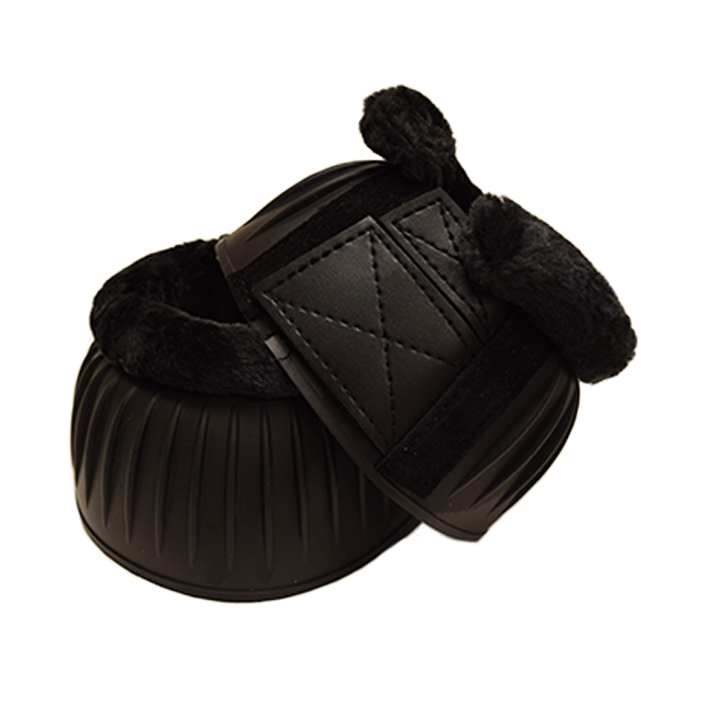 Black rubber bell boots trimmed with black fleece. Double quick closure attachments. Sold in pairs.