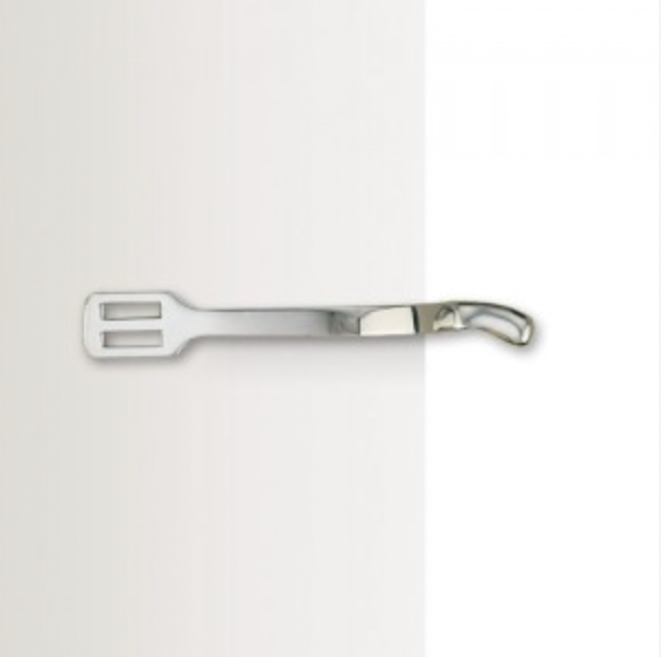Rounded end Prince of Wales spur with flat branches. Lost wax cast and hand polished from the highest grade of 18/8 Stainless Steel. Lifetime guarantee against rust.