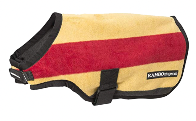 Keep your dog warm and cozy this winter in the Rambo Deluxe Dog Blanket from Horseware Ireland. Anti-pill fleece combines warmth and moisture wicking properties with the classic Newmarket stripe patterns you love. Velcro front closures and belly strap keep this blanket snug and secure for whatever activities your dog wants to enjoy.